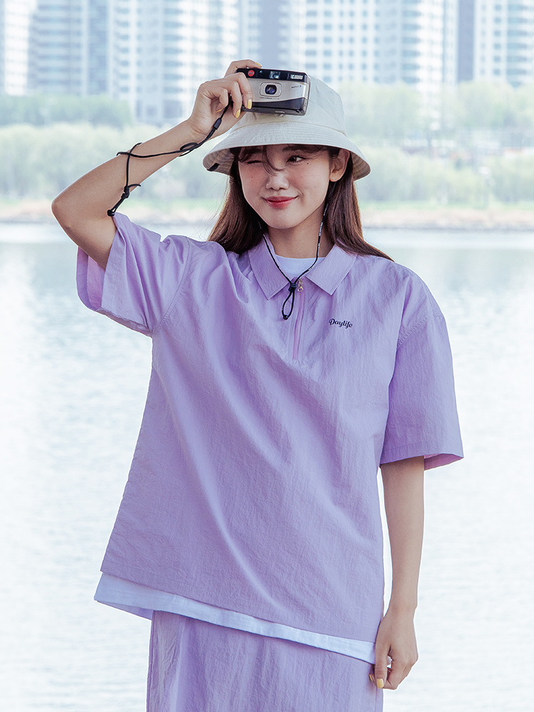 DAYLIFE NYLON COLLAR ZIP UP T-SHIRT (PURPLE)