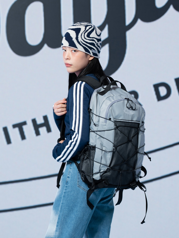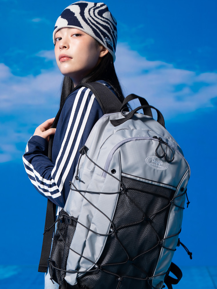 デイライフらしいデザインで完成度の高いデザインで披露するダブルフレームバックパックです。 前面のエックスストッパーを活用して様々なストリング演出が可能で、両サイドにも3Mストリングを適用してデザインポイントを与えました。 前面部に3Mポイントを多様に適用し、暗い夜でも安全でスタイリッシュな製品です。