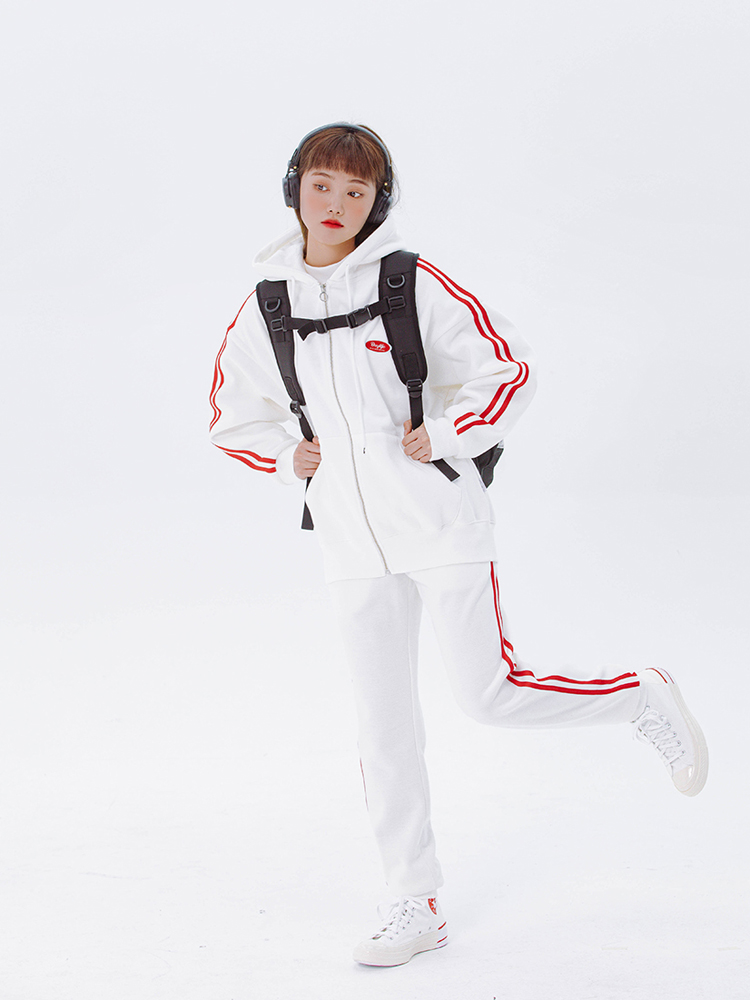 ラインスウェットパンツはラインフードジップアップとセットで演出できる製品です。